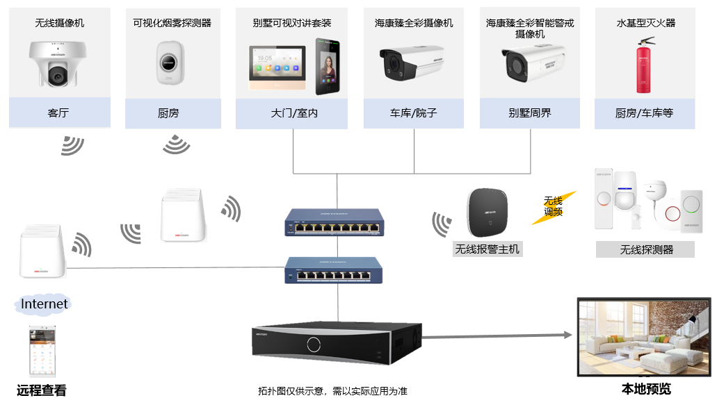 别墅综合安防免费看片的网址,针对别墅大门、围墙周界、车库等重点区域进行视频监控摄像头部署,24小时关注覆盖,并且可实现远程预览,实时关注全屋情况。全屋部署无线报警产品及智慧消防产品,异常情况及时告警,给业主增添一份安心。别墅人脸可视对讲套装及全屋无线路由器的部署,更加提升了业主的入住体验。